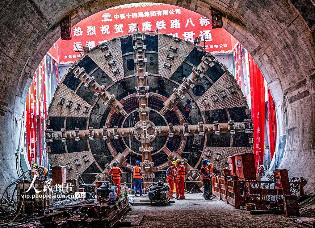 2024年6月27日,开挖直径达13.3米的国产超大泥水平衡盾构机“京通号”在京唐城际铁路运潮减河隧道完成掘进任务,标志着京唐城际铁路全线贯通。