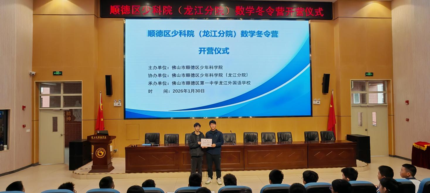 2月4日,冬令营圆满结营,宋高阳为顺利完成学习的学员颁发结业证书,表彰他们在活动中的积极表现与显著进步。同时邀请顺德一中两名专家进行专题讲座:数学竞赛教练黄浩彬结合省级课题研究成果与国际赛事指导经验,带来深入浅出的数学建模分享;中学数学高级教师夏魏毅凭借多年培优经验,开展实用高效的学法指导讲座,两场讲座精准匹配学生核心需求。