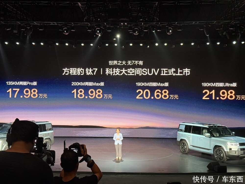 车东西9月10日消息,日前,比亚迪旗下品牌方程豹正式发布了方程豹钛7,新车共分为四个版本,售价区间为17.98万至21.98万元。
